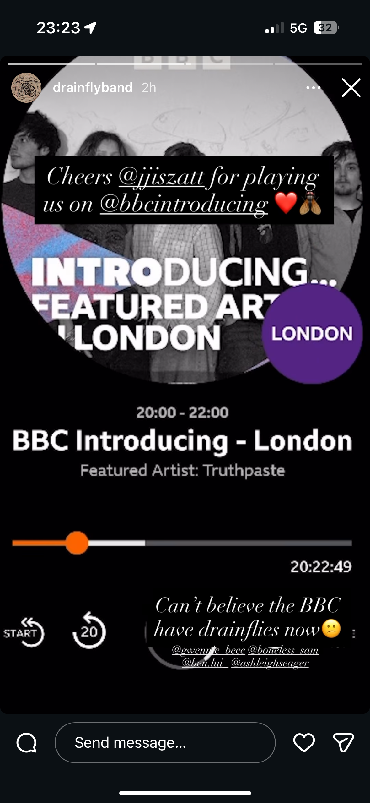 Great to hear Drainfly getting a spin with “Quiet Grief” on BBC Introducing London.